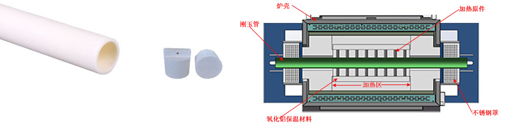 高纯刚玉管:60/80/100*1000mm(管径可选) 两边各放置两个炉塞,炉塞可以阻挡炉管中心的热辐射,必须在加热前放置在炉膛的正确位置 |